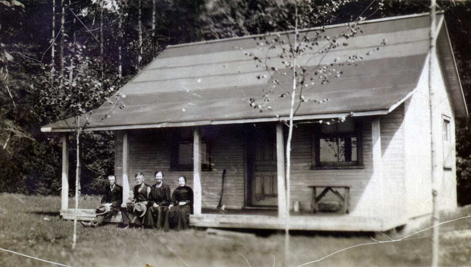 Left to Right: Bob Wright, Wellington Webb, Clarissa Elizabeth Webb (née Vanderburgh), Jane Vanderburgh (née Wright, mother of Clarissa). Wellington and Clarissa married on 5 January 1887. Clarissa's father John Vanderburgh owned lot 6, concession 6 from 1858 until his death on 4 April 1904 when the property was inherited by Clarissa's youngest brother, John Sibbley Vanderburgh.