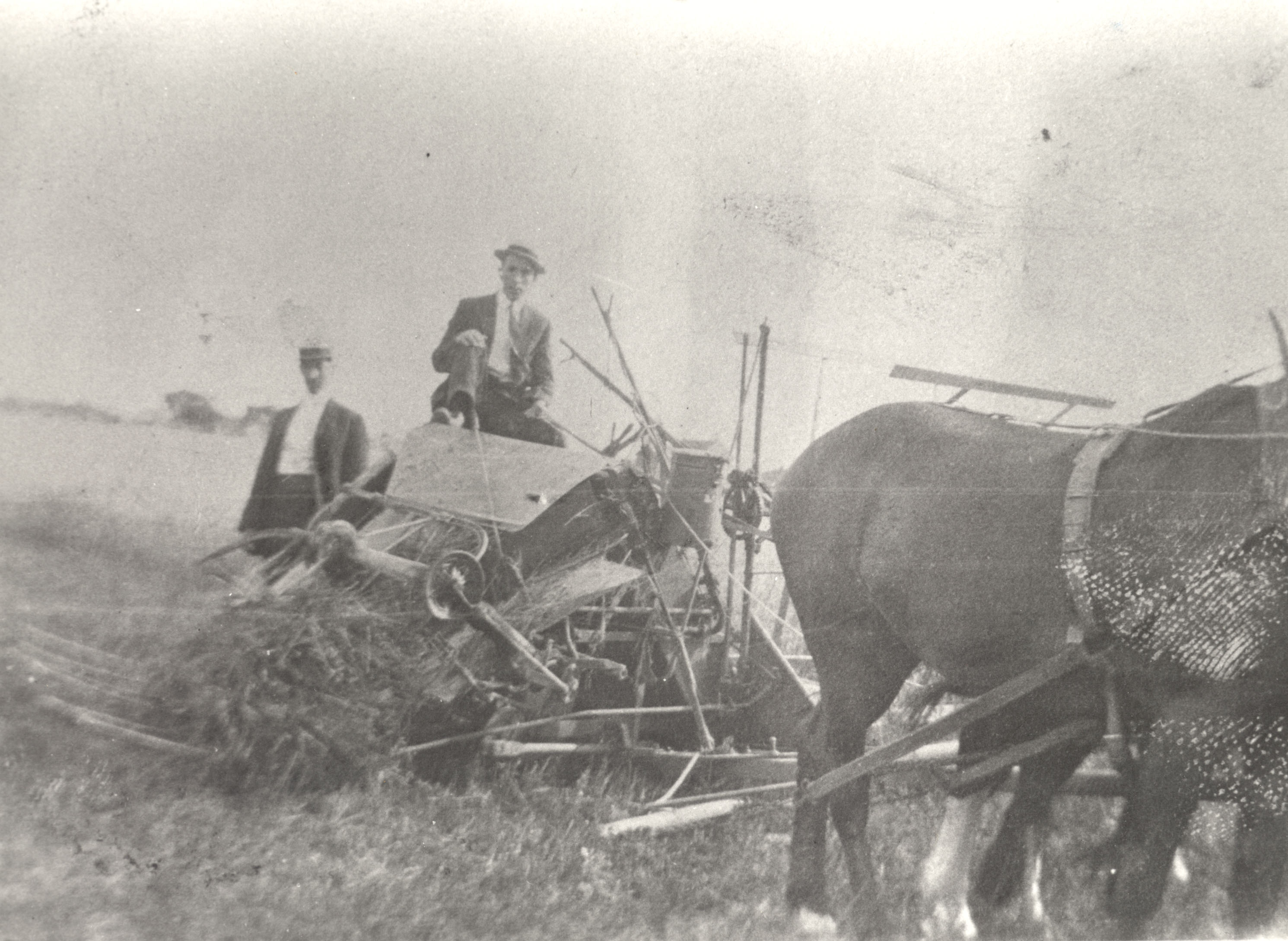 Binder cutting wheat, William Latimer farm.