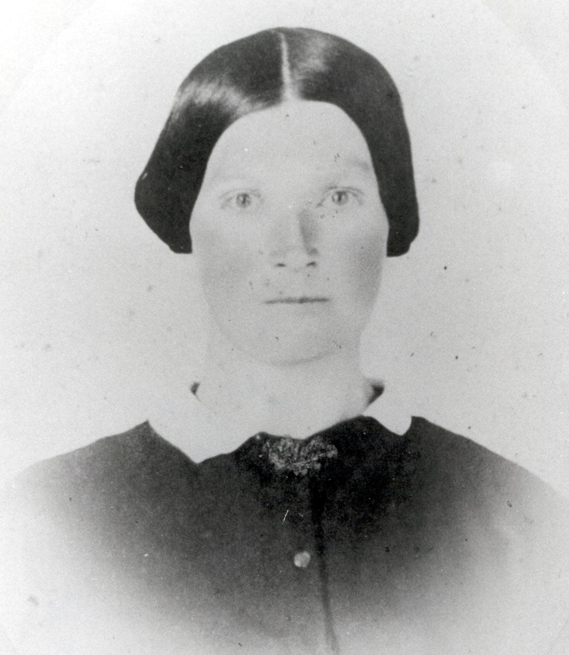 Portrait of Margaret Black (née Booth), grandmother of Robert Herbert Black and wife of Robert Black Sr. who was the son of James Black, an Innisfil pioneer. She lived with her husband and their five children on the northwest corner of lot 10 on the 20th sideroad of Innisfil. The property remained in the Black family for over 100 years. In this photo Margaret is wearing a collared blouse or dress and her hair held back in a style common in the mid-to-late nineteenth century.