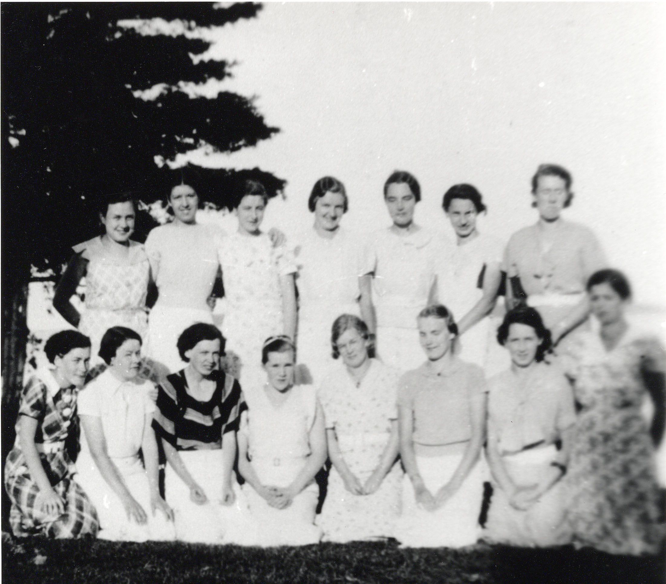 Pictured from left to right - Front Row: Dorothy Allan, Ruth Stewart, Kay Allan, Lorene McDonald, Norma Wilson, Jean Donnelly, Jean Irving, and Jessie Pratt. Back Row: Grace Allan, Mary King, Jean Ralston, Mary Hillock, Luella Donnelly, Jean Hubbert, and Margaret Duncan.