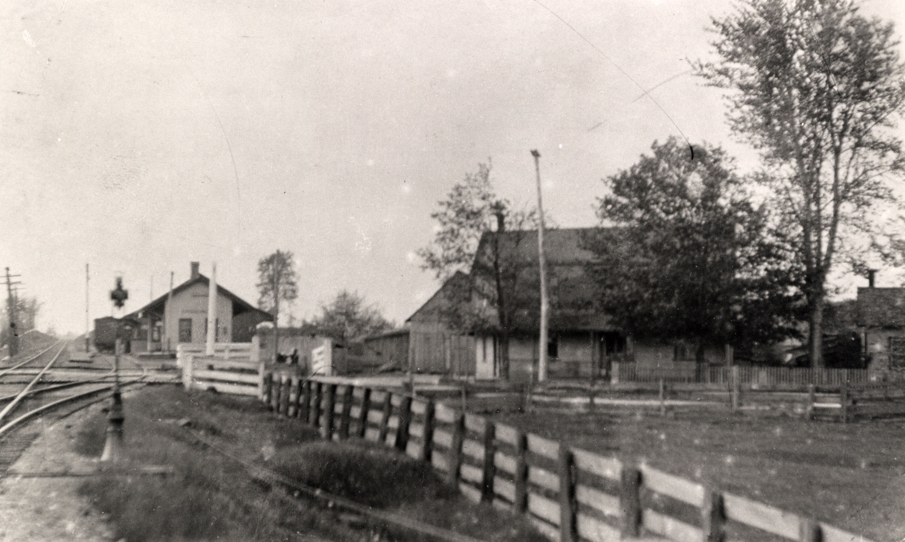 Photograph of the railway station and hotel situated east of railway tracks in Craigvale (now Stroud). William Harper owned the hotel for a significant period of time.