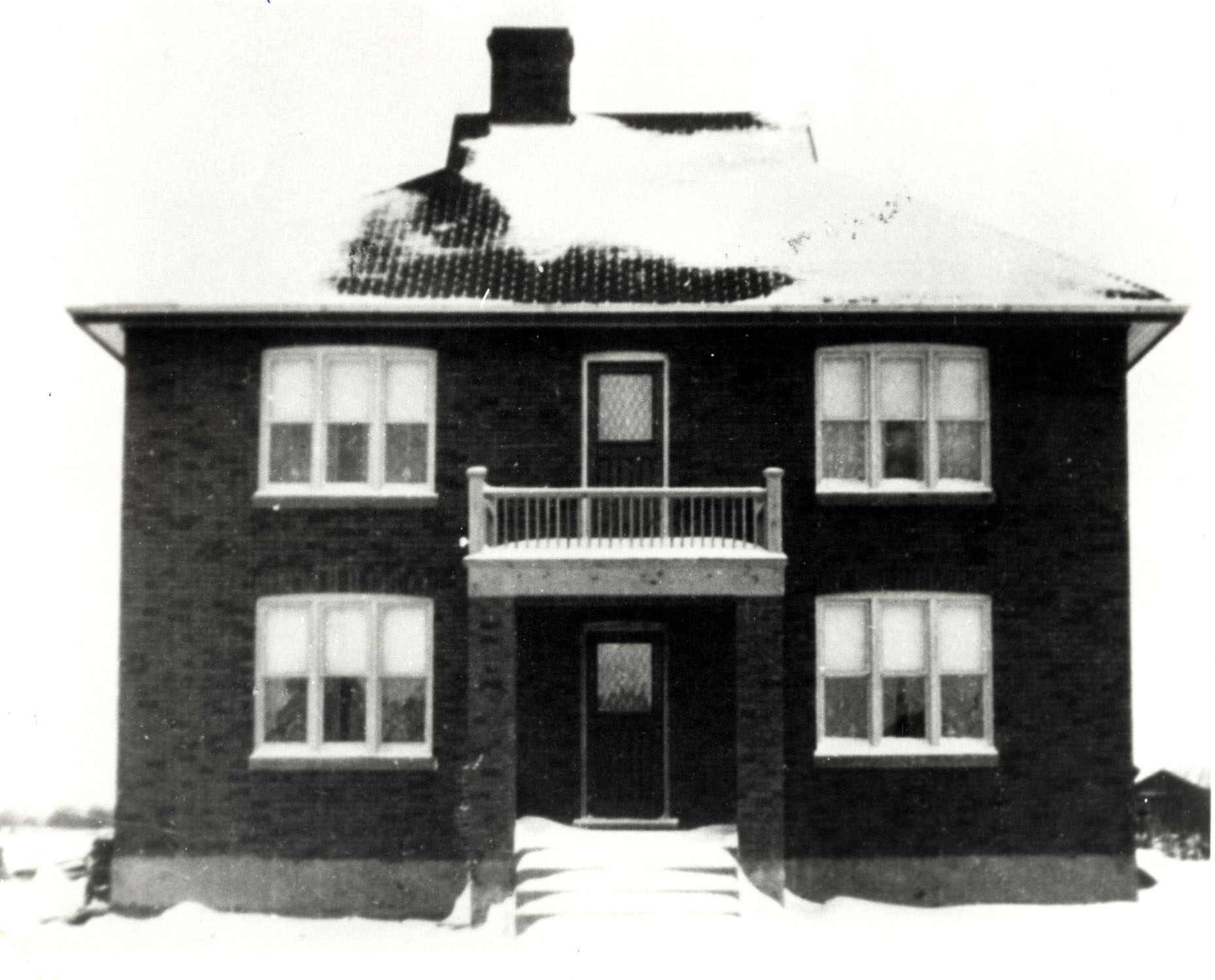 Image of the Avondale farmhouse, taken in 1929. The photograph of the two storied house appears to be taken during the winer, due to the snow on the roof. The farmhouse was originally build by Edwin Johnston. Later, Percy and Allan Johnston lived there - they were not related to Edwin Johnston.