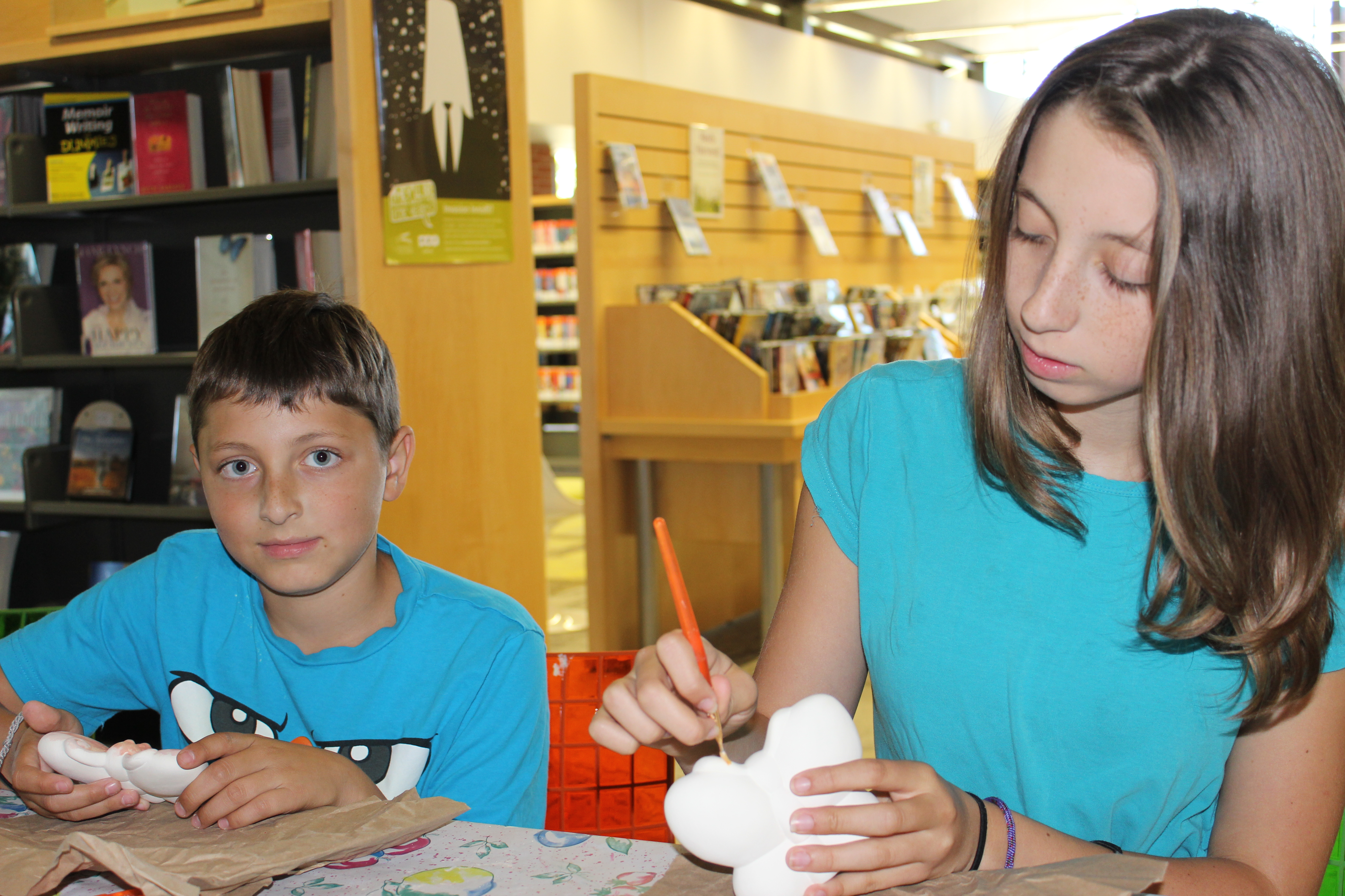 Photo of Luke and Ella B. at the Cookstown Branch of the Innisfil Public Library. The two children were very intent on expressing themselves artistically by painting ceramic butterflies. This photo was taken as a part of the Faces of Innisfil project.