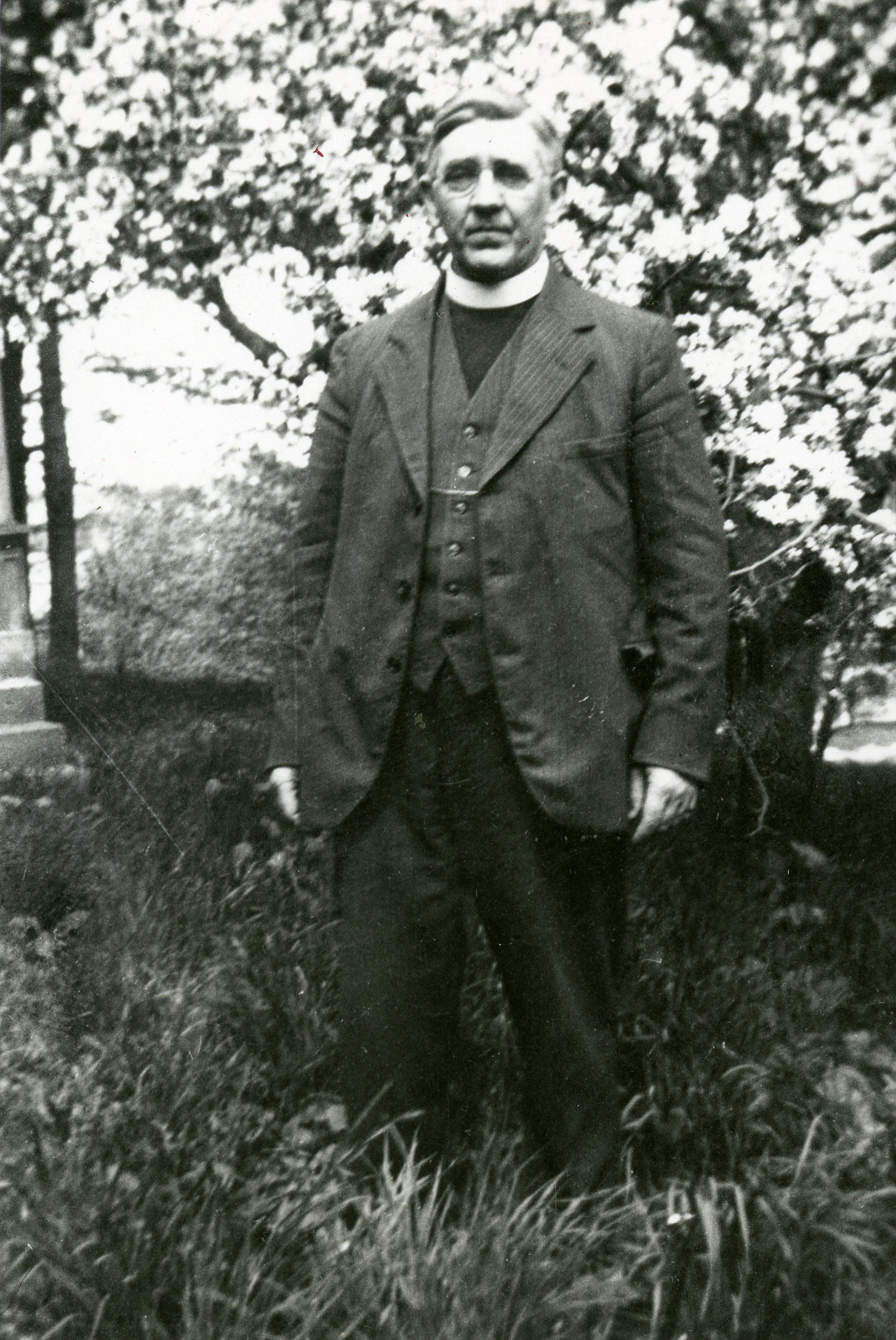 Photo of Rev. Blevin Atkinson of St. John's Anglican Church in Cookstown dressed in a suit and collar.