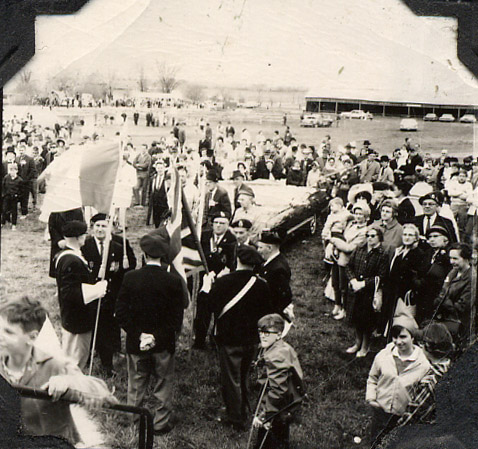 Image taken during Canada's Centennial celebration at Cookstown, in 1967. The image shows the grounds of the celebration, and crowds/audience forming. The car which the honorary guests arrived at the event in can be seen in the photograph. This image was taken from page 10 of the Cooktown Tweedsmuir History.