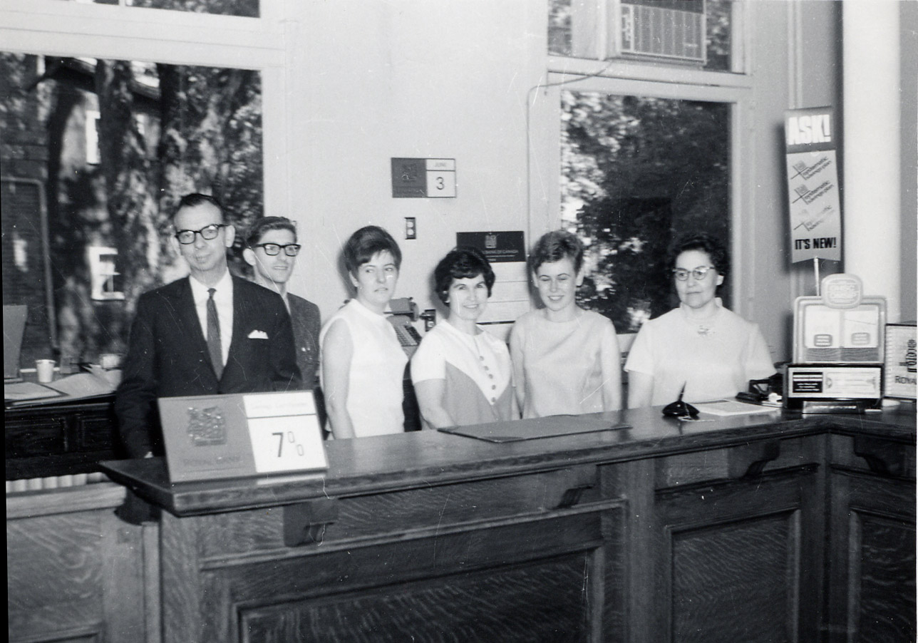 Employees, left to right: Mr. George Proctor, Manager Mr. John Lehman Mrs. Anne Hart, Mrs. Barbara Edney Miss Susan Sparry, Mrs. Grace Carter