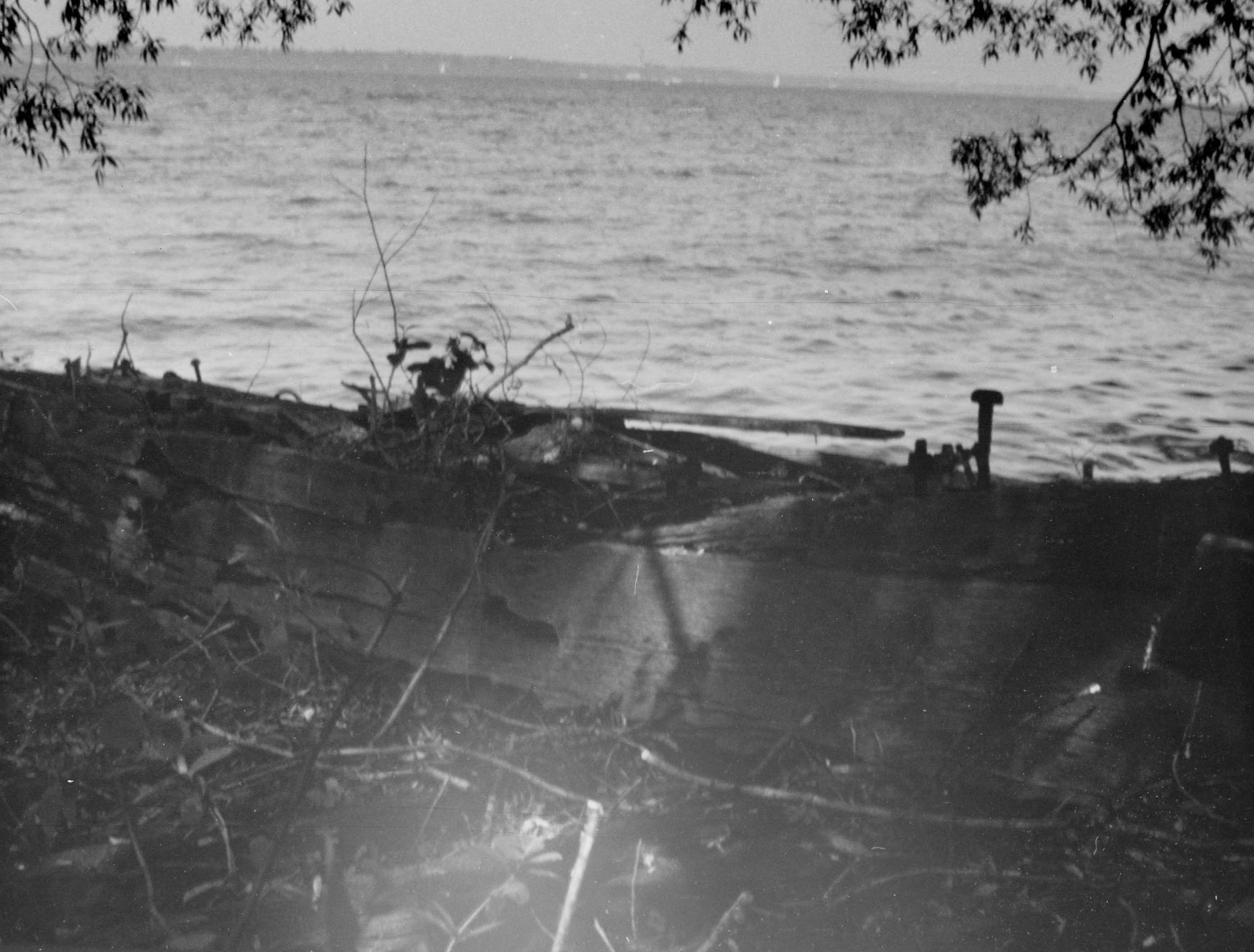 Field trip of the Innisfil Historical Society. The remains of the "Emily May" in water off Belle Ewart Park. It was an excursion boat. (1861-1884)