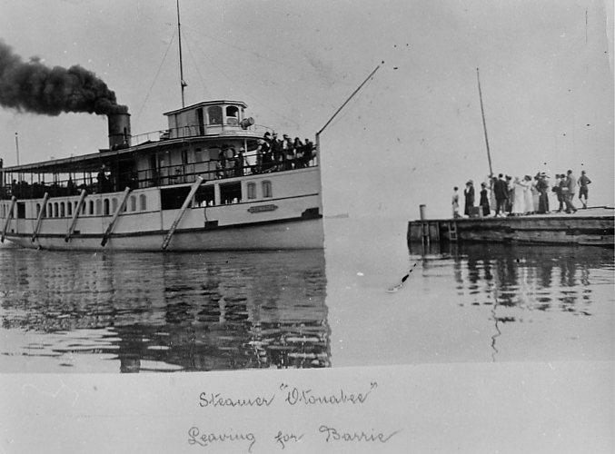 Steamer "Otonabee" leaving for Barrie from De Grassi. NAVIGATION.