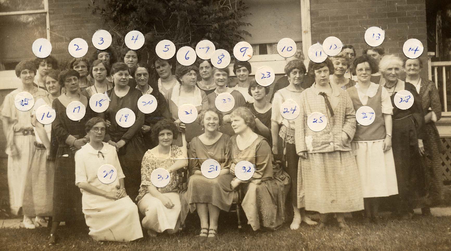 1.______ 2._______ 3.______ 4.Emily Gollop 5.MaryAnn Reed 6.Mrs. Glass 7._______ 8.Mrs. Atton 9.Mrs. McAfee 10.Miss Spense 11.___ Neilly 12.Mrs. Stoddart 13.__________14.Mrs. Alex Robinson 15.Lottie Dinwoody 16.Mabel Chantler 17.Gerty Cooper 18.Mrs. W.J. Scott 19.Mrs. Leadlay 20.Mrs. H. Couse 21.Mrs. R.W. Glass 23.Mrs. J. Puglsey 24.Miss Spence 25. ___ Neilly 27. ____ Dunning 28.Mrs. Alex Arnold 29.Mabel Kell 30.Mrs. Theo. McMillan 31.Mrs. J.R. Couse 32.Mrs. David Hopper