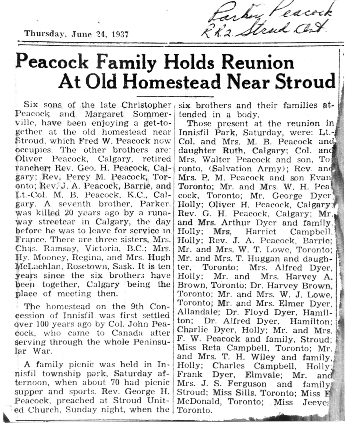 Peacock Family Reunion 1937