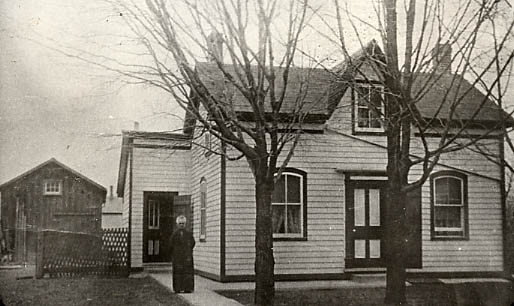 After many years it is hard to identify a home, but we believe this snapshot was taken of the McMahon house on Hamilton Street. As of today, 1977, there is still only about one thing similar and that is the part of the roof at the back of the side door, that slopes downward. Roll no.316-00