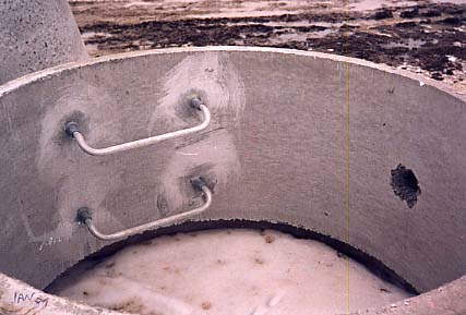 Large tile placed in ground in field south of Mobile Home Park. Part of sewer installation.