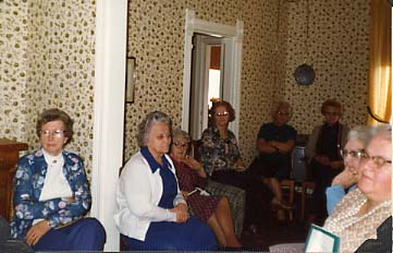 Mrs. Trotter's living room: L.to R. Mrs. S. Carter, Mrs. Mapes, Mrs. Monkman, Mrs. Baker, Mrs. Cave, Mrs. French.