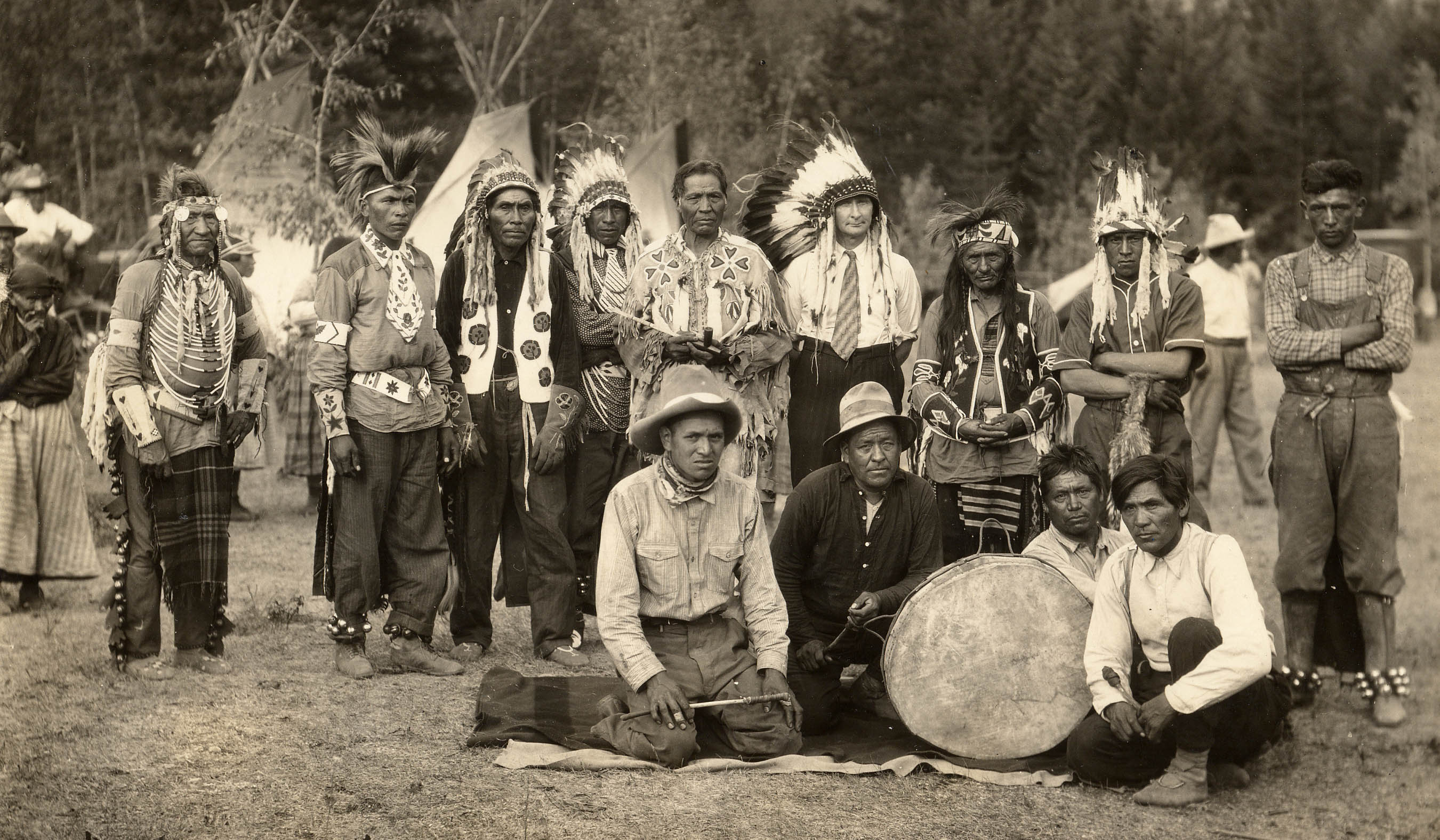 Mr. King with the white shirt and tie and Indian chief headdress. Donated by Mr. Tom King of Golden, BC. A former Cookstown man who has donated much information to the Tweedsmuir History. This photo was taken August 1931.