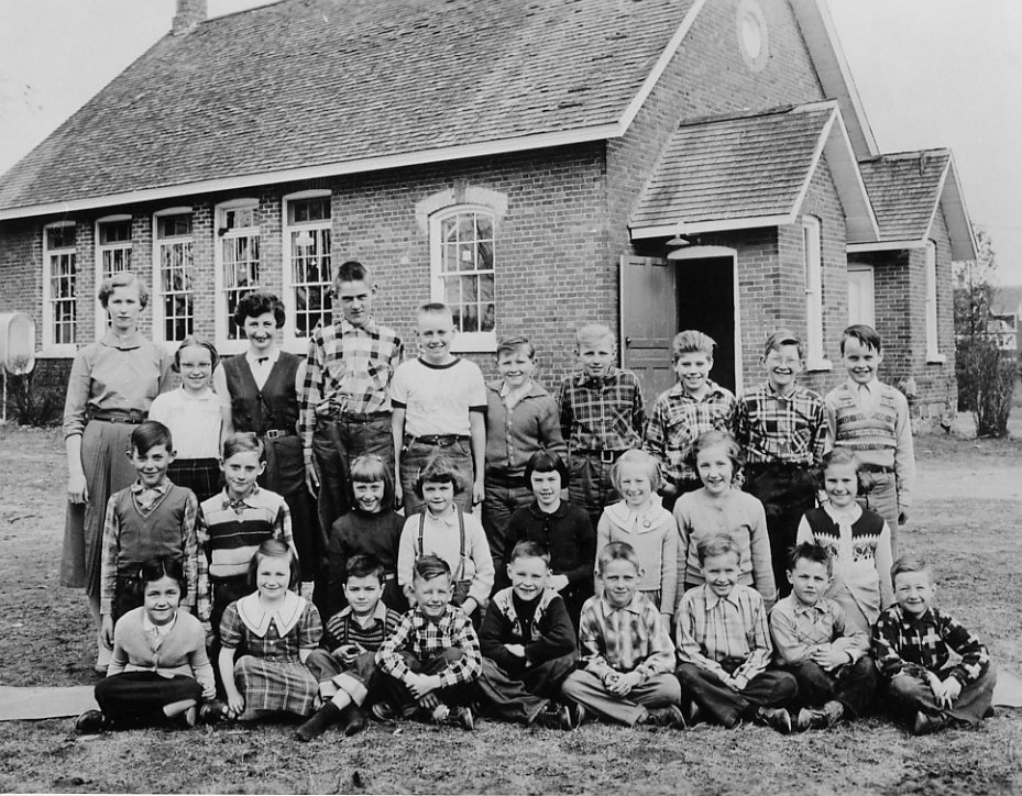 Back row (l to r): Ethel Todd (teacher) Jean Spence,Helen Sawyer, Ken Matchett, Stan Todd, Norman Priestly, Ron Zielke, Donald Wallace, Garry Sawyer, Neil Sturgeon Middle Row: Ricky Oleksinski, Ziggie Oleksinski, Lucy Oleksinski,June Fairhead, Barbara Hughes, Janis Rowell, Brenda Allan, Marylene Rowell Front row: Pam Allan, Jeannine Rowell, Dan Fairhead, John Kell, Murray Spence, Ed Matchett, Terry Davis, John Hughes,Brian Sawyer Schools
