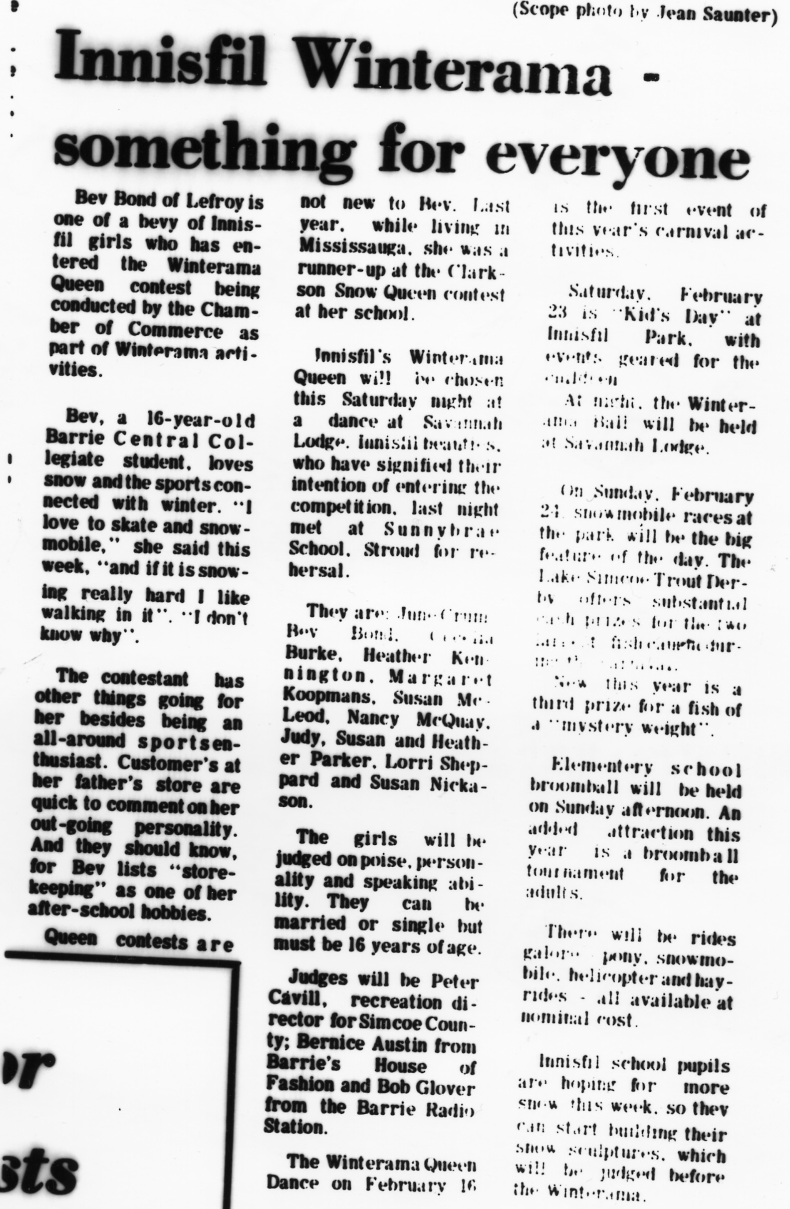 Newspaper clipping on Innisfil Winterama Further information is available at the Knock Heritage Site