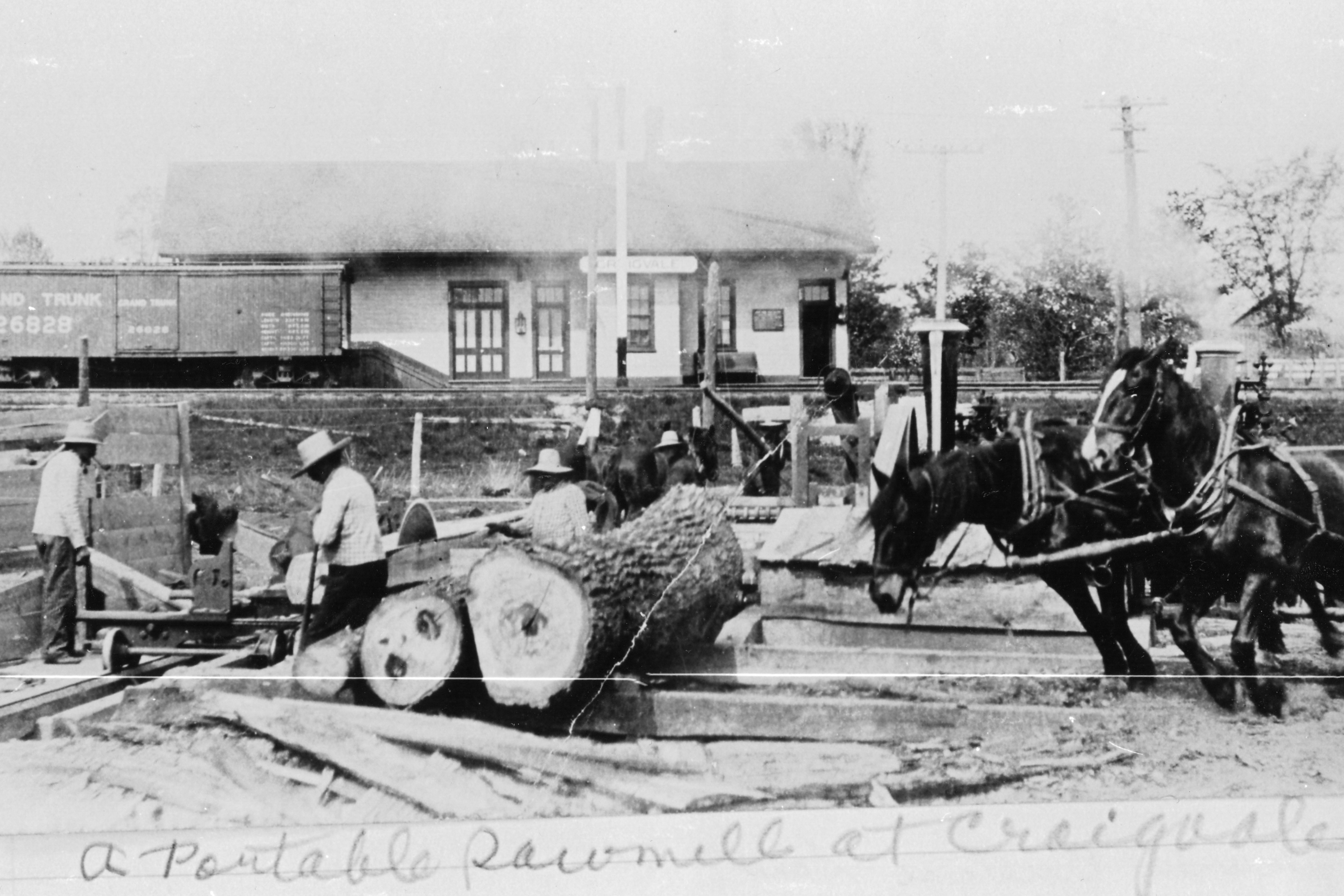 A portable sawmill at Craigvale. From page 24 of Stroud Tweedsmuir History, Vol. 1.