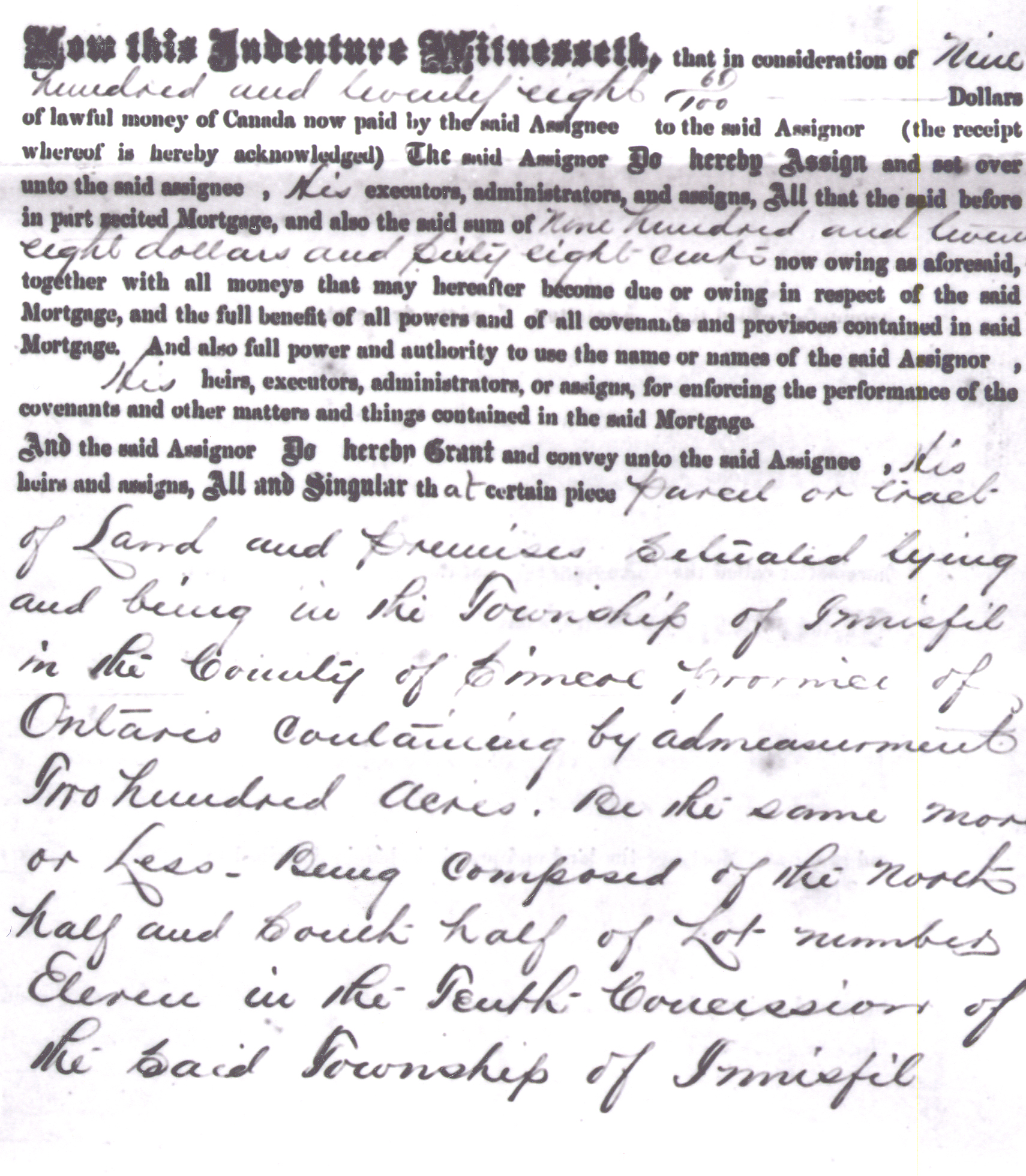 Real Estate - Mortgage - Thompson Smith to John Sheff Burger N1/2 and S1/2 Lot 11, Conc. 10 More Information at Knock Heritage Centre Real estate - Mortgage Thompson Smith John Sheff Burger