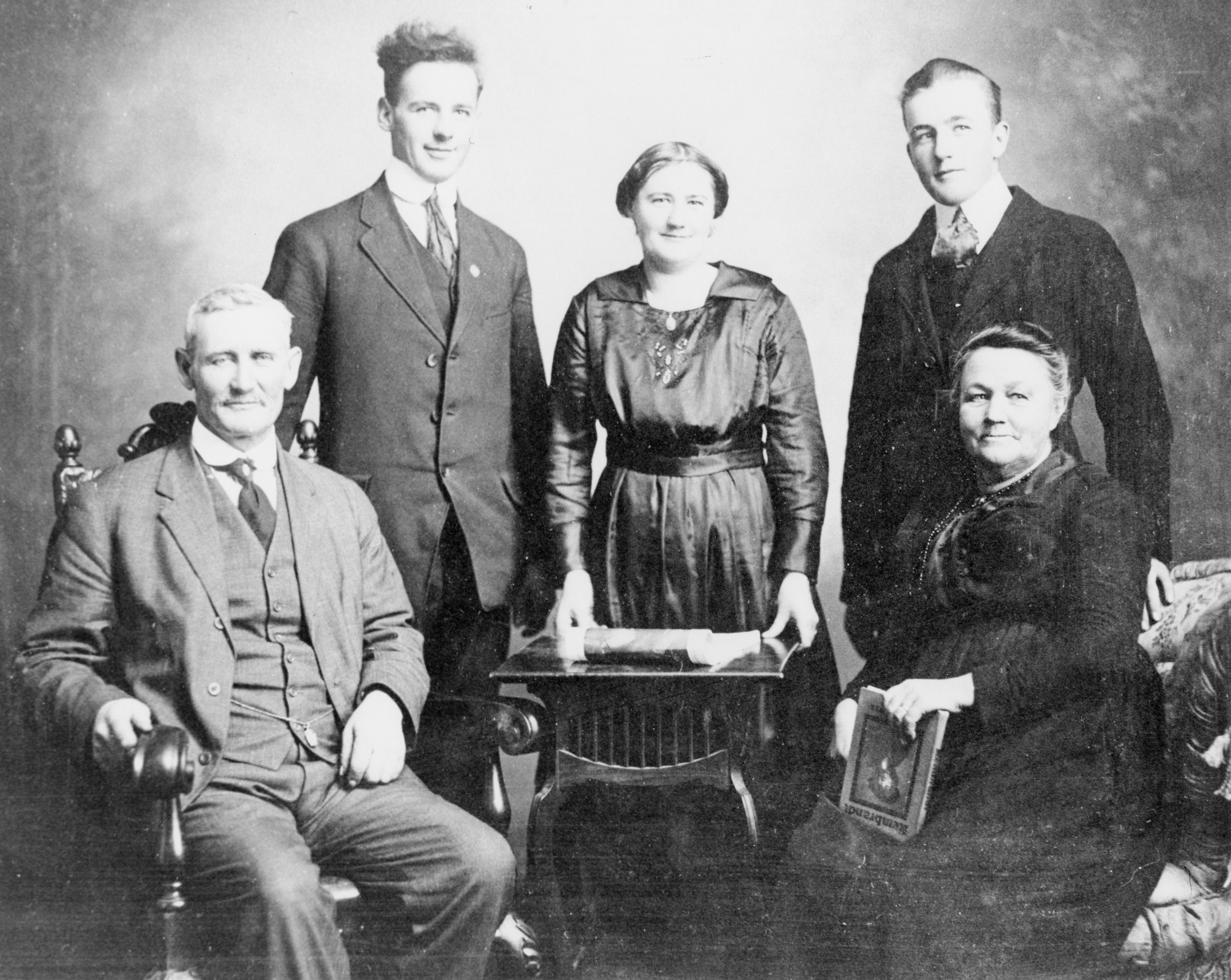 Back: (left to right) - Leonard Martin, Wilda Martin (Mrs. Fred Reynolds) Maurice Martin. Front: William Martin, Maggie Jane (nee Leonard)Martin (William was on Township Council) Further information is available at the Knock Heritage Site
