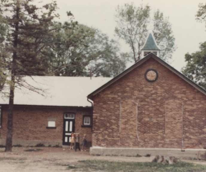 Painswick School (also called Warnica School Annex #1) S.S. #13. Corner Highway 11 and Conc. 13. Built in 1860 - earliest brick school in Innisfil. Closed 1967. Now demolished. The woodshed to the left of the photo was used for awhile as an additional classroom. After the closing of the school and with the takeover by Simcoe County Board of Education, Innisfil Historical Society were able to lease the school for several years as its headquarters at one dollar per year due mostly to the historical interest of the Supt. of Plant at the time, Mr. Gary Alix Schools Painswick