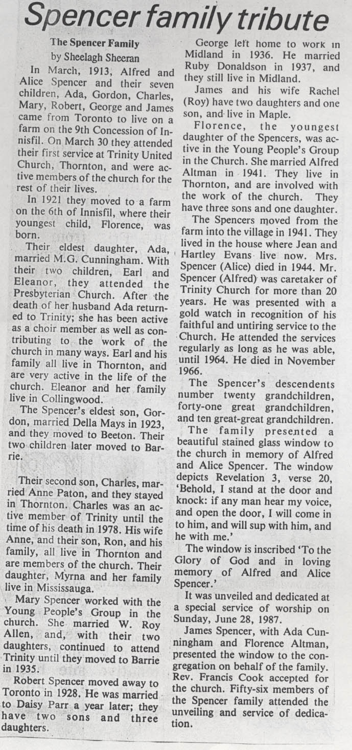 Spencer family Tribute - Newspaper article