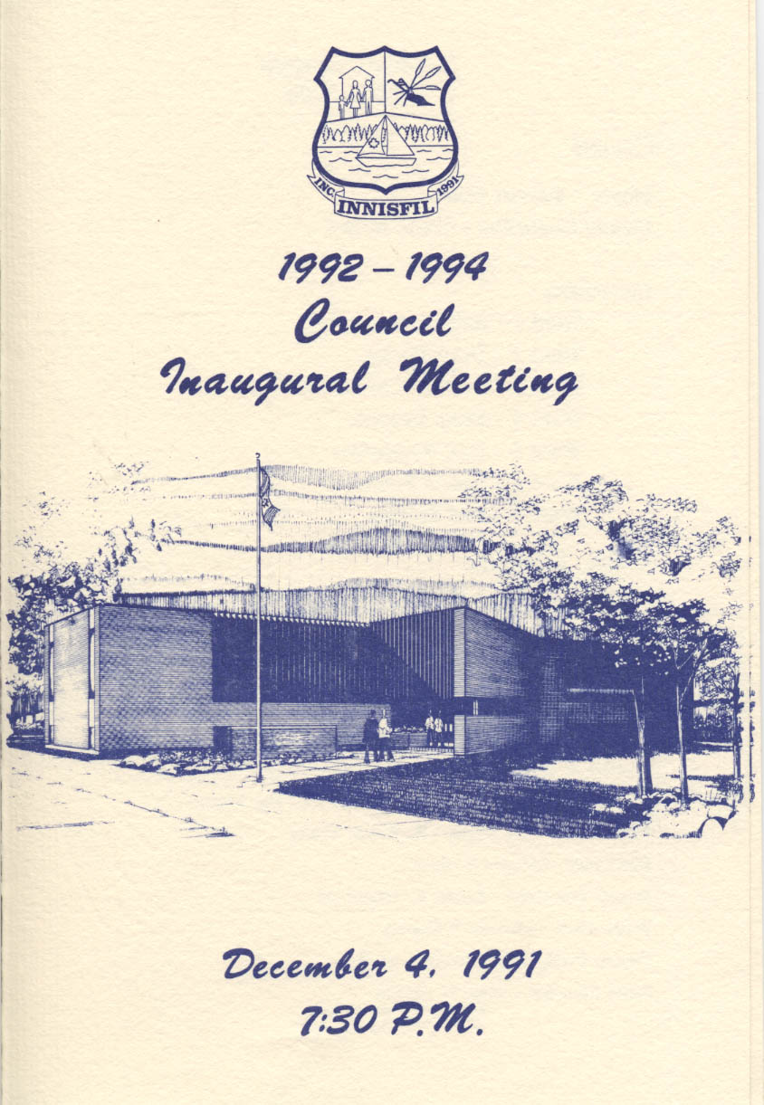 Programme of 1992-1994 Council Inaugural Meeting of the Town of Innisfil Innisfil - Elected Representatives and Employees Further information is available at the Knock Heritage Site