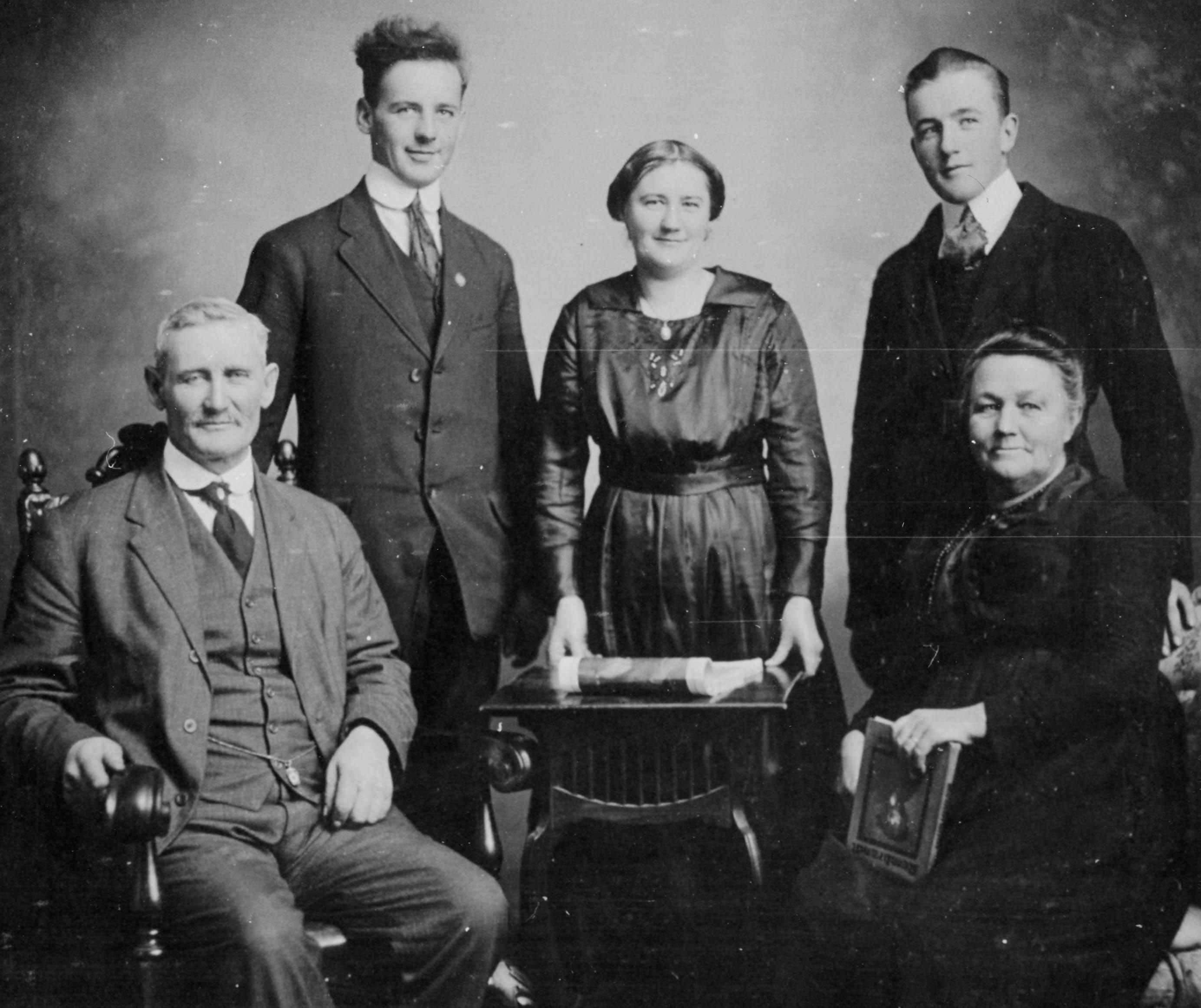 Seated - William H. Martin, his wife Margaret Jane (nee Leonard). L to R - Leonard, Wilda and Maurice, Son John died from "flu" 1918.