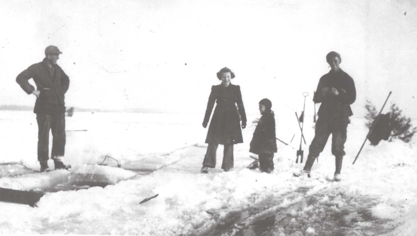 Cutting ice for the Belle Ewart Ice Company each winter. Left: Verl Hill Mary Curtis John Curtis Right: Roy Hill Bell Ewart Ice Co. Hill, Verl Curtis, Mary Curtis, John Hill, Roy