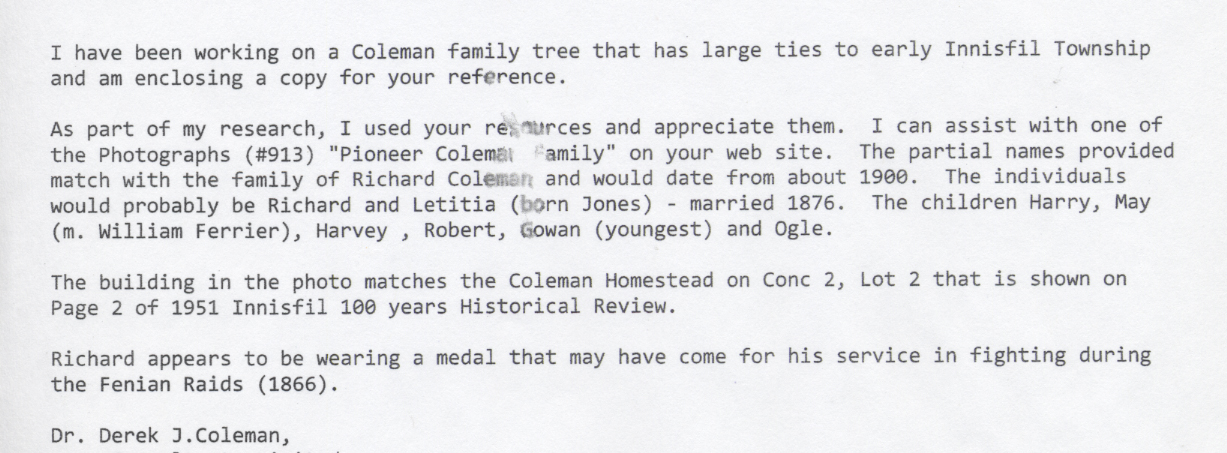 Coleman Family Tree - 3 pages Family Records Family Tree Coleman family of Lot 2, Con.2 Additional information available at Knock Heritage Site
