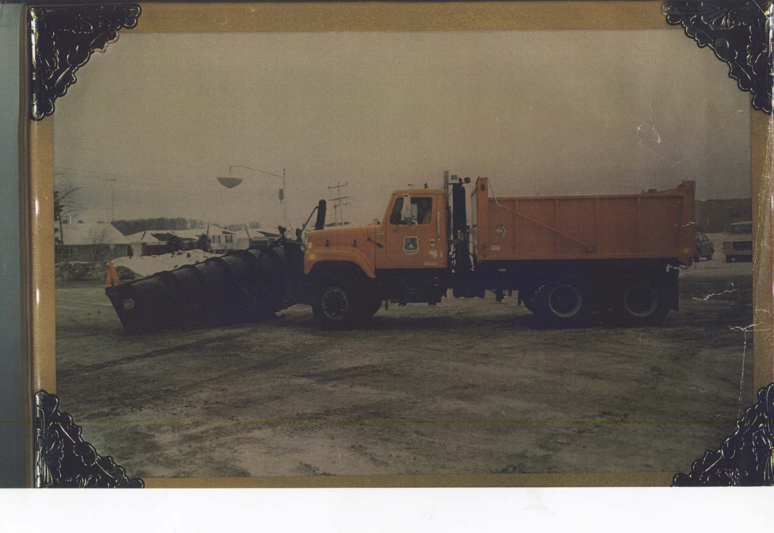 Township of Innisfil's first Tandem truck (4 sets of 2 tires in rear) with one way blade. David Martin (son of Allan and Jean Martin) is driving. Further information is available at the Knock Heritage Site