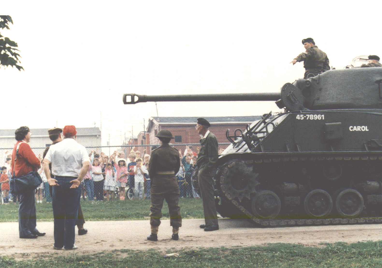 Sunnybrae Public School - Sunnybrae Avenue Sunnybrae students listen to an explanation about this Sherman tank, restored by Stroud man and military buff, Steve Elford. WWII vet, Ernie Goheen, leans against tank. Schools - Sunnybrae Goheen, Ernie Elford, Steve