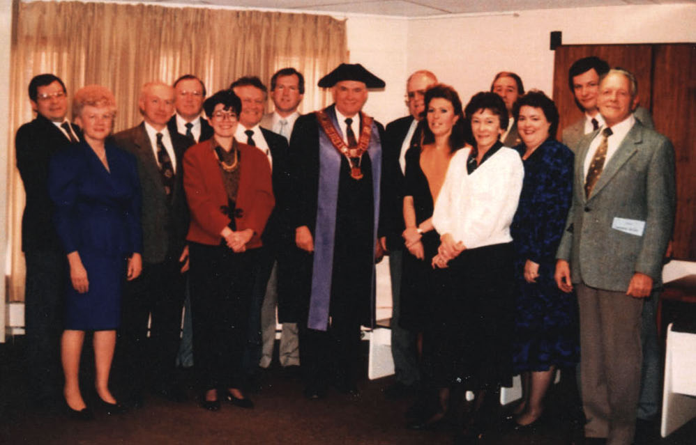 Innisfil Town Staff Congratulate new Warden of Simcoe CountyA: Bob Lemmon, Pat Mergl, Treasurer Andrew Cowan, CAO Richard Groh, Chief Librarian Susan Downs, Roy Bridge, Warden and Mayor Stewart Fisher, Fire Chief Doug Rose - - Clerk Paul Landry, Kathy Tyndal, Steve Cancilla, Bob Moisie.