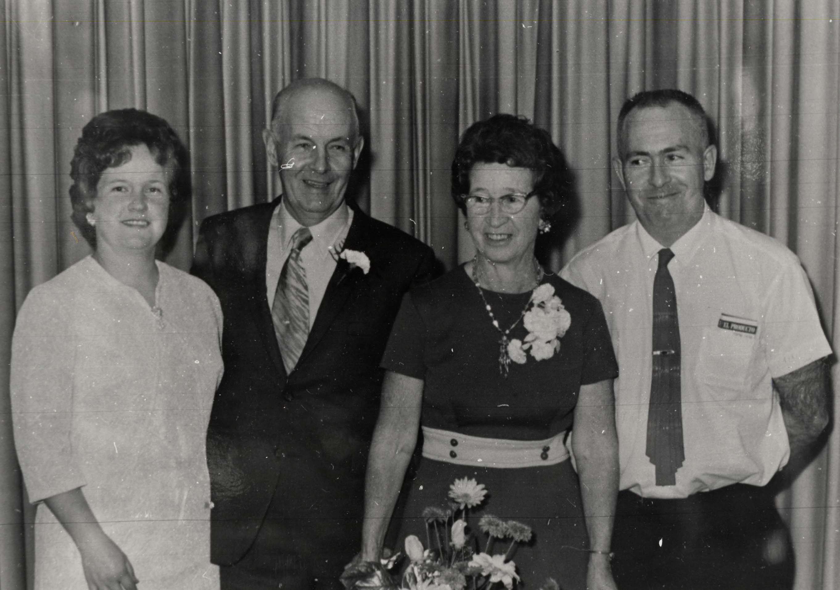Image taken at the 40th Wedding Anniversary of Edgar and Lois (Nee. Todd) Sturgeon. [L-R] Mrs. Margaret (Wilfred) Peacock, Edgar Sturgeon, Lois Sturgeon, Donald. Further information is available at the Knock Heritage Site