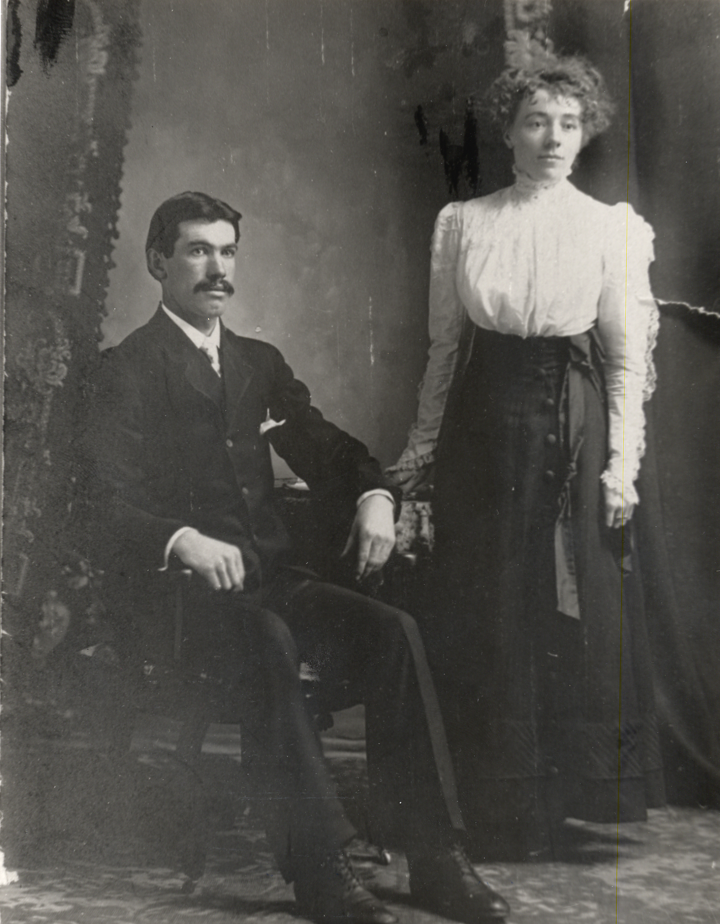 Mr. and Mrs. Fred Morris on their wedding day Costumes and clothing Furniture