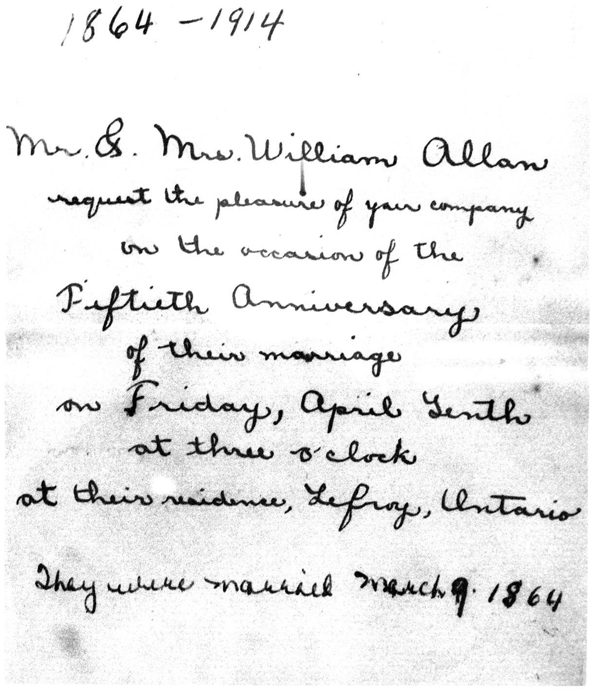 Golden Wedding Anniversary invitation - Mr. and Mrs. William Allan.