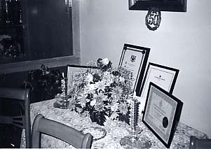 Lovely flower arrangement, candles and plaques received by the Bakers on the occasion of their 50th Wedding Anniversary.