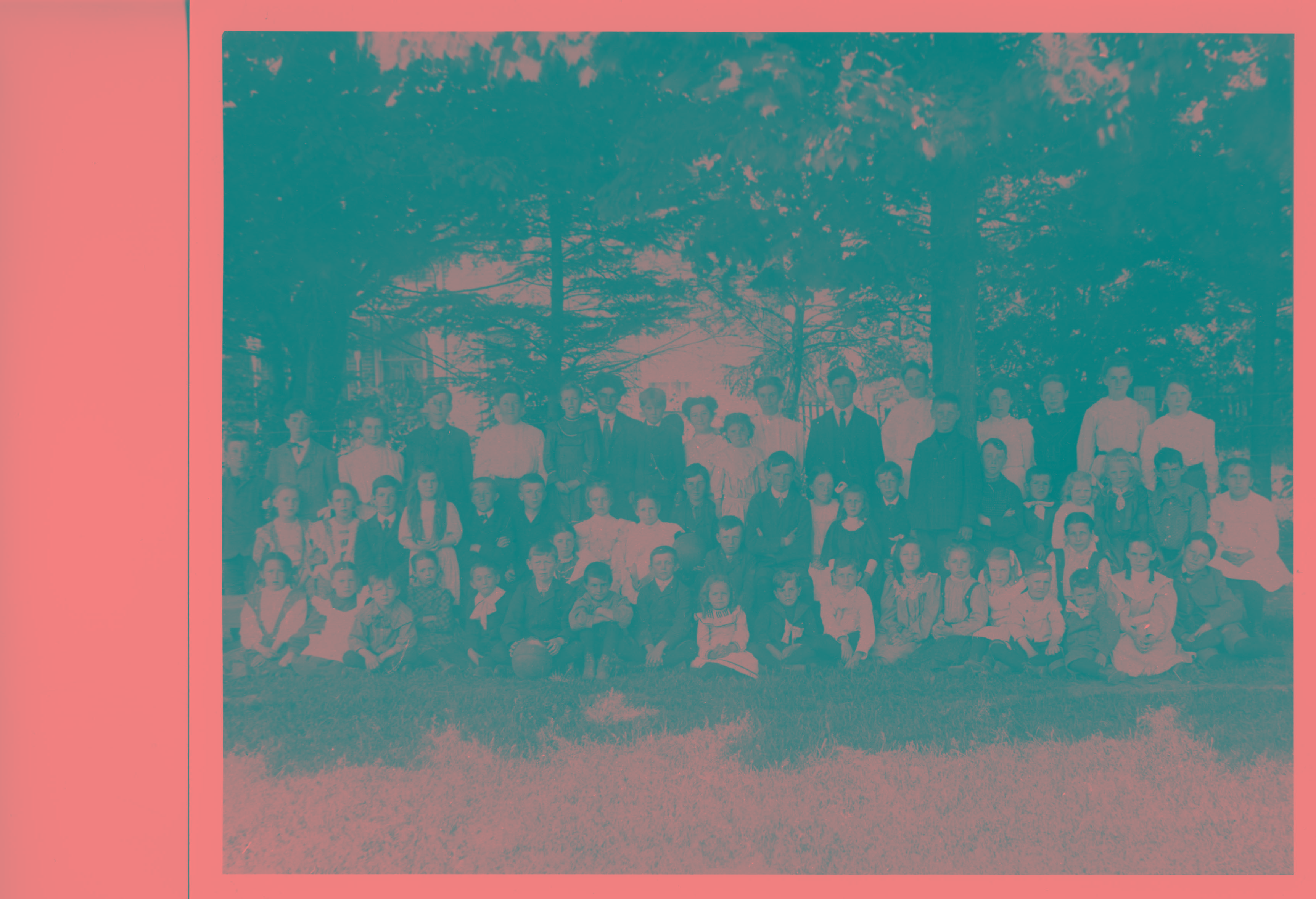 Back Row L to R: Stanley Bosworth, Stanley Latimer, Laura Wright, Bert Robertson, Mabel Reid, Violet Sproule, Parker Peacock, ________, Gertrude Wright, Susie Peacock (teacher) Wilfred Stewart,teacher, Bertie Mullholland, Harvey Dickie, Nellie Black,_____,Nellie Cave, Mayme Mathews. Centre Row, L to R: Katie Brewster, Lulu Black, Wallace Latimer,Ray McCullough, Jim Mathers, Warrington Hughes, Charlie Warnica, Ethel Beelby, Marion Black, Clarence Dolan, Alvin Webb, Wilfred Sutherland, Ida Mathers,_____Robert Sproule,_____,_____, Donald Sutherland, Zella Harper. Front Row L to R: Hester Black, Minnie Meredith, Fred Webb, Laura Sproule, Burt Wright, Bert Pratt. See also #37 for some alternate suggestions for some of the names.