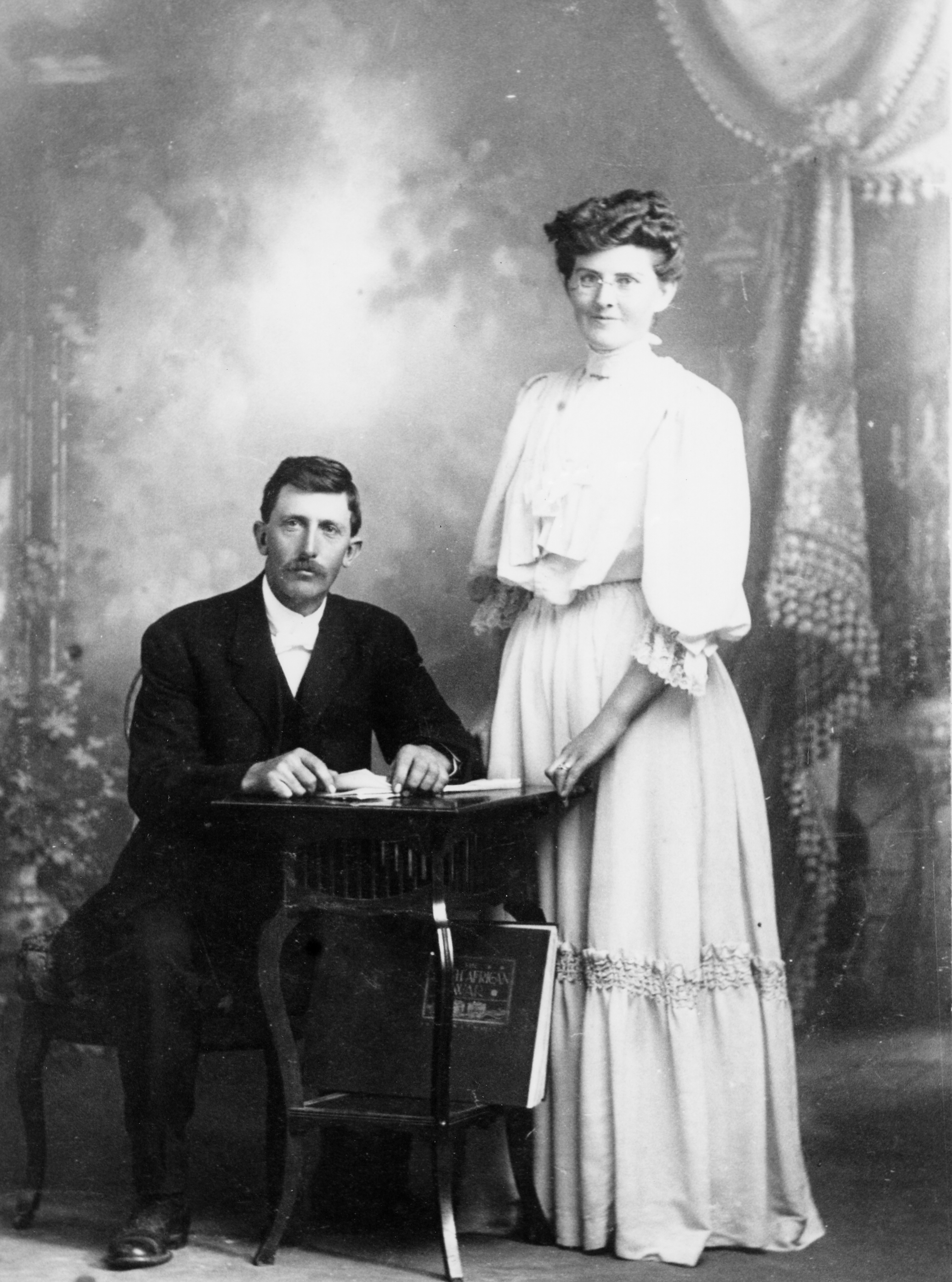 Wedding of Mr. and Mrs. Albert Pratt, April 9, 1907, Albert Pratt (at age 30) and 2nd wife Ann Lorinda (Annie Hopkins at age 22). Mr. Pratt's first wife Ida Black died.
