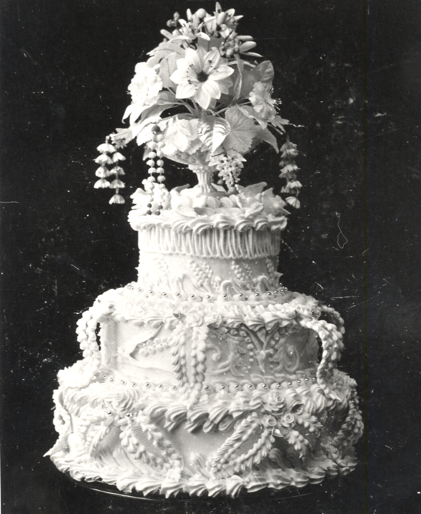 Photo of the cake made for the wedding of Dorothea Dreyer and James Alexander Jamieson on 19 January 1898. The wedding was performed in Orillia.