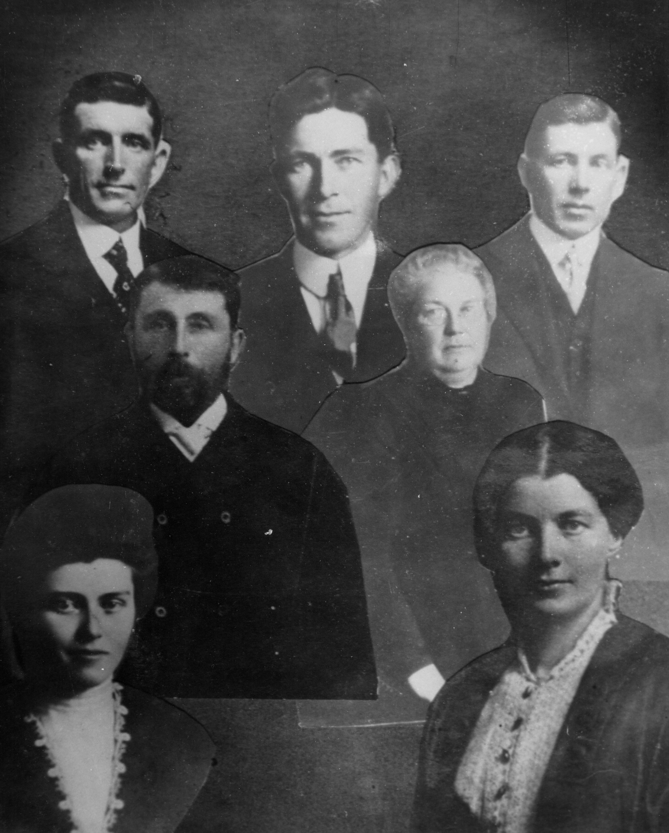 Robert Stewart Family: Back: Harry, Wilfred, Charlie Centre: Robert J. and Mrs. Stewart Front: Millie and Mabel Stewart (b. 1889).