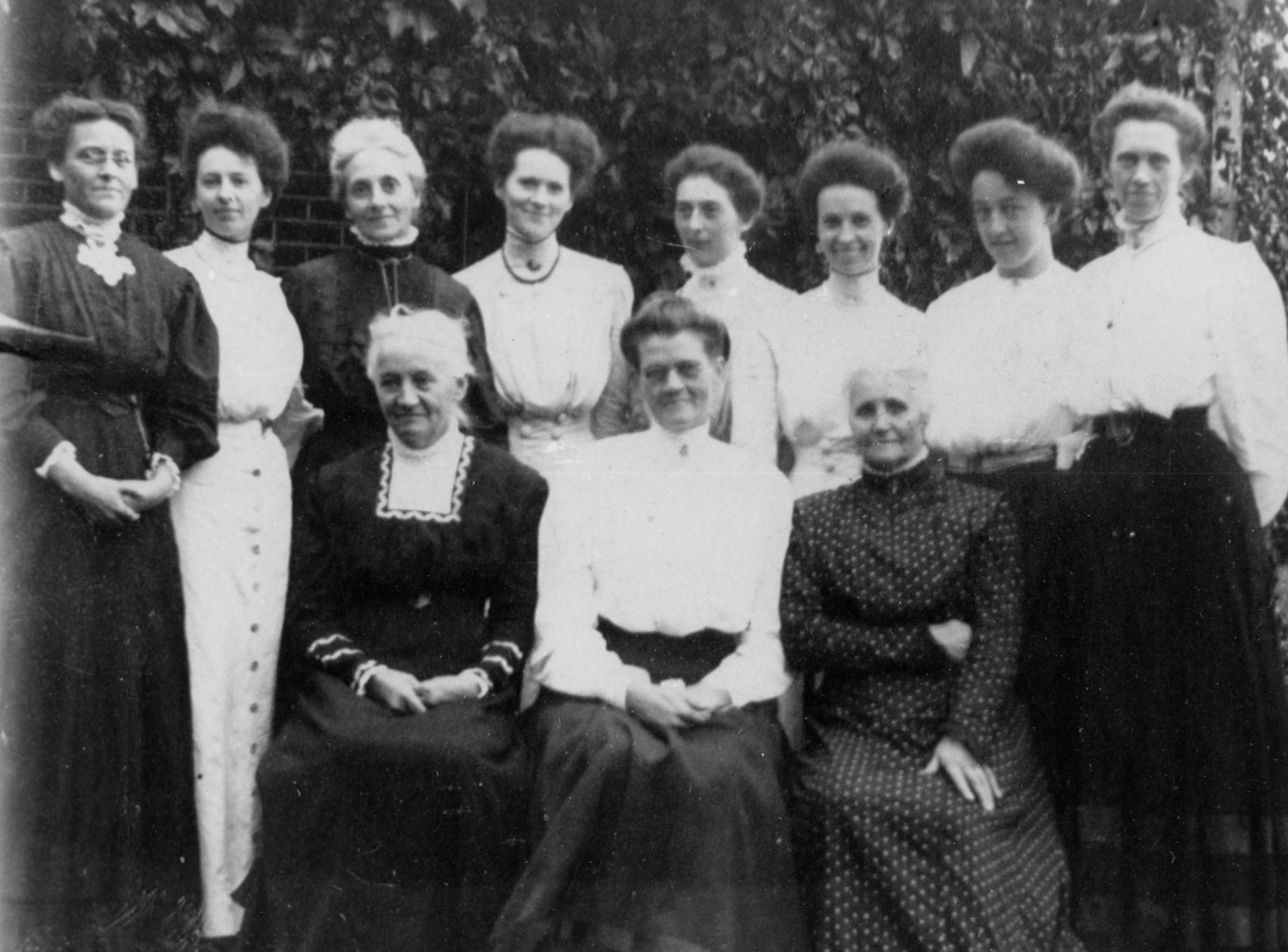 Left to right sitting: Mrs. John Srigley, Mary (Palling) Archer, Mrs. William Miller Back Row: Zelma Srigley (later Mrs. John Sinton), Mildred Miller, Chrissie Little, Louise Miller, Gertrude Little, Florence Miller (later Mrs. Arthur Little), Bertha Srigley (later Mrs. Nicholson), Elizabeth Palling.