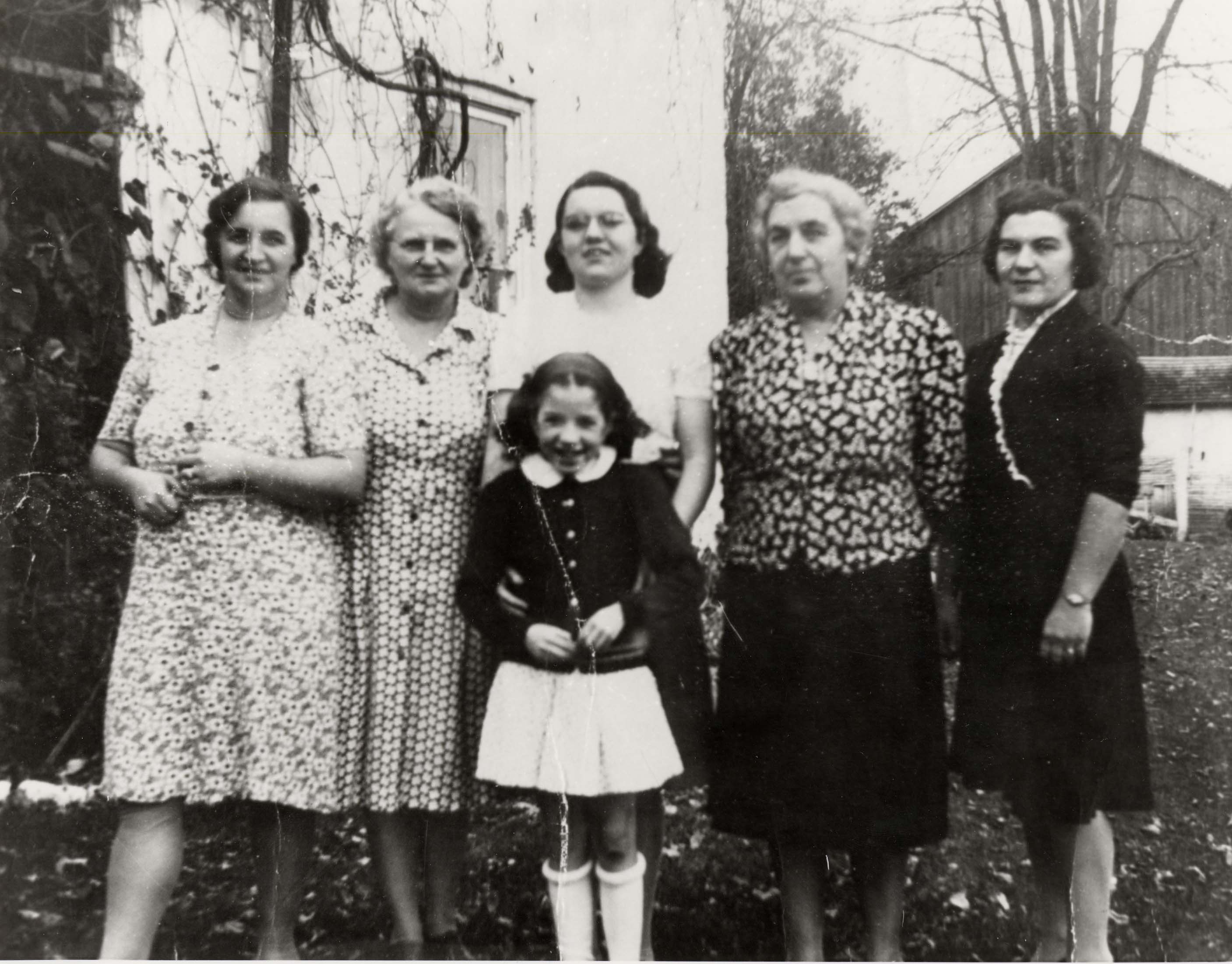 Group: Left to Right: Dora Southern, Mrs. Frank Beatty, Faith Beatty (Vardon) born 1924, (child)Doreen Southern-Mrs. W. Elberg born 1936) Mrs. Fred Beatty, (Nellie May Wallace 1895-1963) Helen Beatty Laughlin born 1918. Further information is available at the Knock Heritage Site