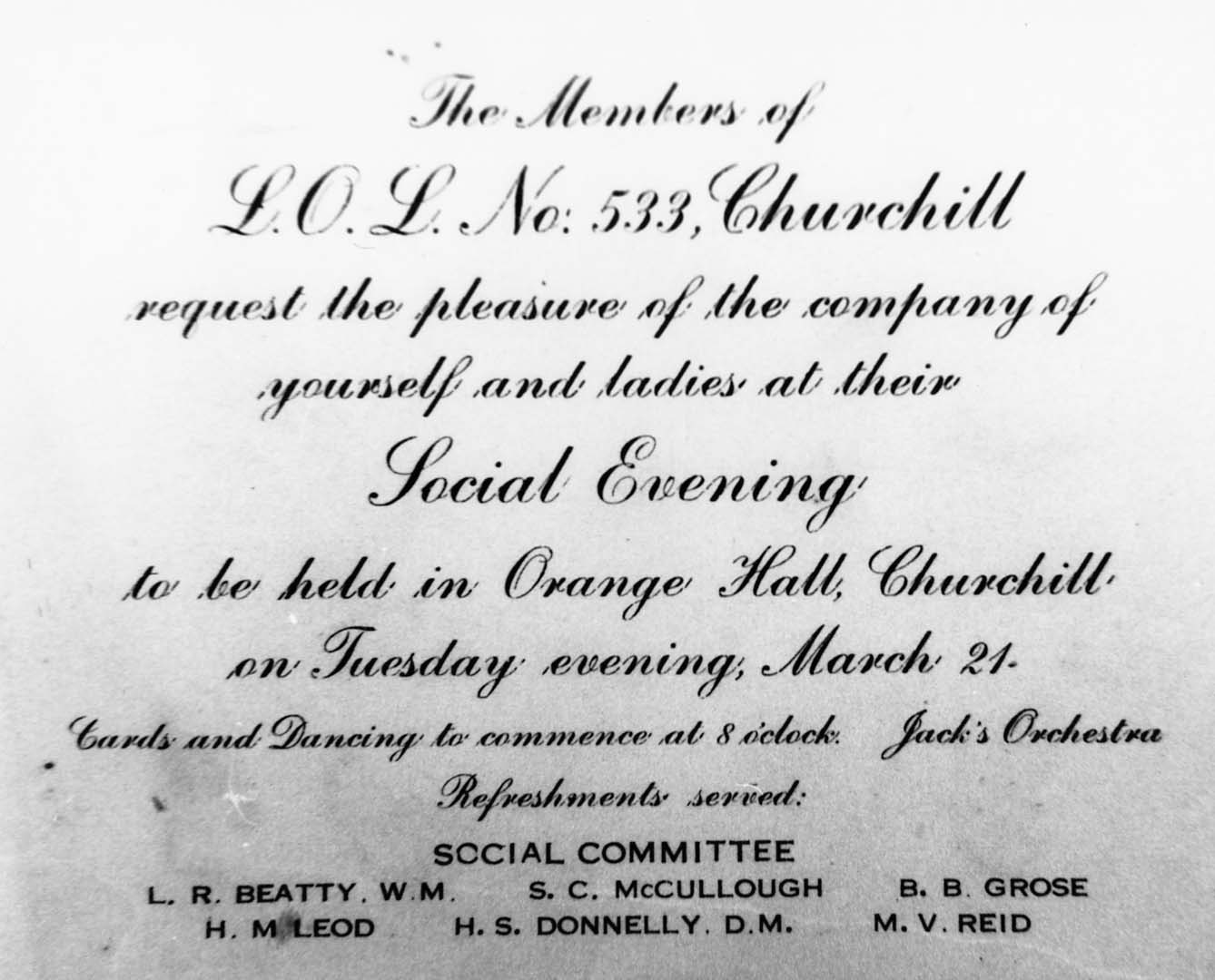 Social Evening - Put on by L.O.L No.533, Churchill, held at Orange Hall, Churchill.