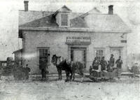 Photograph taken in 1870 of "Churchill House", an early hotel in Churchill. The sign located above the door was said to, IHS638