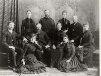 Studio portrait of the Sharpe Family. Pictured in the centre are Mr. John and Mrs. Nellie (née Gray) Sharpe with their, IHS915
