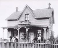 Image taken around the 1900s of the Barry Family home. The family can be seen positioned on the front porch of their, IHS3534
