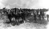 Picture of plowing taking at Wellington Webb's farm circa 1905., IHS210