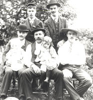 Back row left to right: W. Latimer, Stan Latimer, Laura Wright, Bert Robertson, Mabel Reid, Violet Sproule, Parker, IHS37
