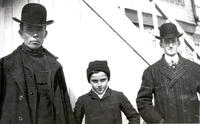 stairs--men--child--hat--coat