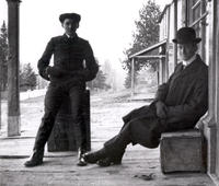 Photo of Norman Sloan (left) and Charles Asquith (right), a teacher at the Fifth Line School, in front of S.W. Moore, IHS2597